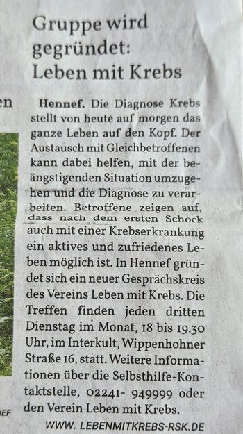 Betroffene helfen Betroffenen - Selbsthilfegruppe Hennef