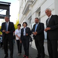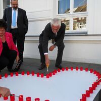 Ingrid Schürheck, 1.Vorsitzende des Vereins "Leben mit Krebs" begrüßte auch Landrätin Michaela Balansky und den stellvertr. Bürgermeister der Stadt Sankt Augustin, Friedhelm Heckeroth. Beide sind der Einladung gefolgt um gemeinsam mit Bürgermeister Franz Huhn draußen vor dem Museum die Lichter zu entzünden.
