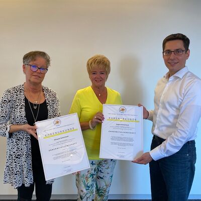 Als Nachfolgerin nahm Beate Schoenen diese besondere Gelegenheit wahr, Urkunden zu überreichen, nachdem Ingrid Schürheck und ihrem Ehemann Winand in letzten Mitgliederversammlung die Ehrenmitgliedschaft erteilt wurden. Ingrid Schürheck hat den Verein 2003 gegründet und bis 06.04.2022 geleitet. Dabei engagierte sie sich mit ihrer ganzen Persönlichkeit und machte den Verein zu einer bekannten Institution im Rhein-Sieg-Kreis. Sichtlich gerührt nahm Ingrid Schürheck die besondere Auszeichnung auch für ihren Mann gerne entgegen.