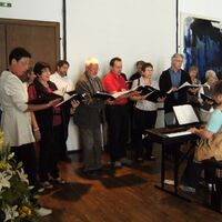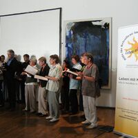 Begleitend sang der Madrigal Chor Siegburg unter der Leitung von Radegund Ebus bei strahlendem Sonnenschein auf den Stufen des Museum.