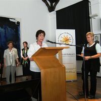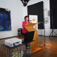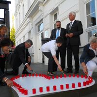 Ingrid Schürheck, 1.Vorsitzende des Vereins "Leben mit Krebs" begrüßte auch Landrätin Michaela Balansky und den stellvertr. Bürgermeister der Stadt Sankt Augustin, Friedhelm Heckeroth. Beide sind der Einladung gefolgt um gemeinsam mit Bürgermeister Franz Huhn draußen vor dem Museum die Lichter zu entzünden.