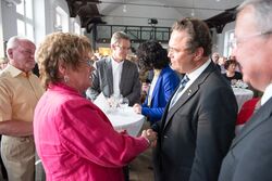 Die Einladung zu einem Empfang der Ehrenamtlichen in der Region nahm auch die Vorsitzende Ingrid Schürheck wahr und hatte Gelegenheit, einige Minuten ganz persönlich mit dem Bundesminister des Innern, Dr. Hans-Peter Friedrich, im Beisein von Lisa Winkelmeier-Becker ( MdB) und des Landrates Frithjof Kühn zu sprechen.