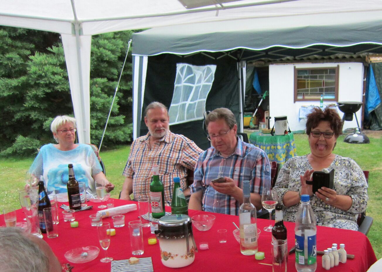 Frohe Gesichter bei einem gemütlichen Grillfest.