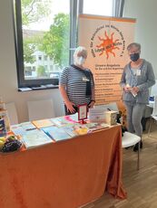 Wie schon angekündigt waren auch wir, "Leben mit Krebs", mit einem Stand vertreten. Sehr schön war der rege Austausch der Gruppen untereinander und auch das Interesse an Infomaterial (Flyer …) bei den Veranstaltern. Ungünstig fanden wir die Verteilung auf mehrere kleinere Räumlichkeiten, dadurch hielten sich z.B. Betroffene nur kurz an den Ständen auf.
