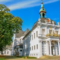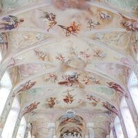 Dort schauen wir uns die Kreuzbergkapelle (1746 -1751) an und erfahren etwas über Balthasar Neumann, einem bekannten Architekten des Barocks und des Rokokos.